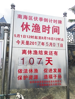 昨日,大鹏新区竖起了南海伏季休渔倒计时牌。