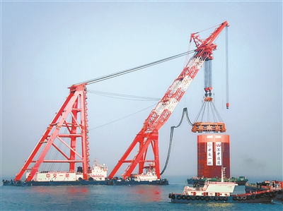 深圳新闻网讯 昨日,深圳至中山跨江通道西人工岛首个钢圆筒顺利振沉到位,这标志着深中通道建设进入实质性的实体工程施工阶段。