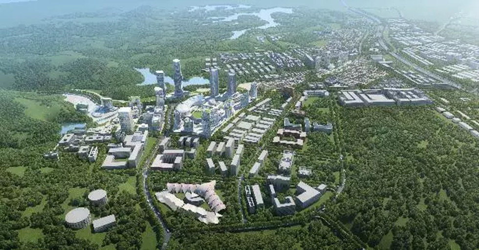 创意城还充分利用绝佳山水资源,以九龙山郊野创意公园项目打造龙华绿色第三极,与羊台山、大脑壳山差异化发展,互相借力。面向崇尚健康生活的年轻人才,有效整合周边旅游和文化资源,发展绿色时尚创意旅游。(图为羊台山森林公园大浪入口广场二期工程鸟瞰图。)