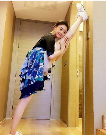 蒋欣作为微胖界的女神,柔韧性也不错啊。纷纷评论称:“娘娘,你撩到我了”、“这大长腿得4米吧”。