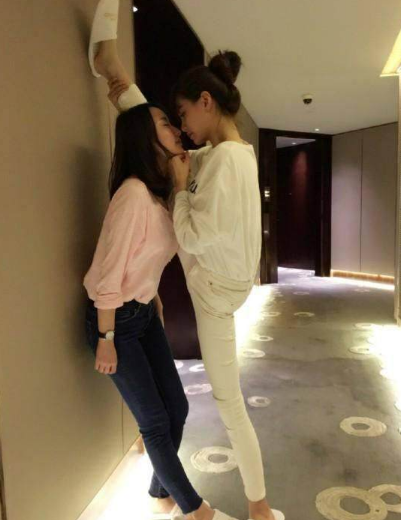 沈梦辰在墙上劈一字马,尽显长腿,手摸好友下巴攻气十足。小编想说,放开那女纸,有什么事冲我来啊!