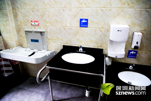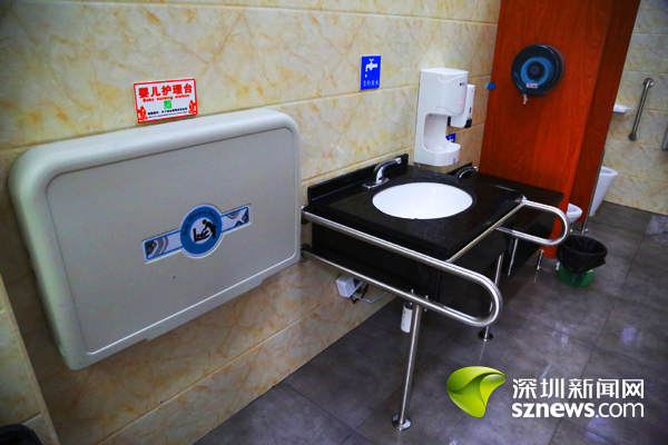 记者了解到,鹏湾公厕位于盐田区海山街道马庙街靠近深盐路路段,与盐田中央公园仅有一路之隔。在马庙街上,中英文的“公共厕所”标识格外醒目,公厕通道的一侧栽种了绿化带。沿着通道步行约5米左拐,崭新的鹏湾公厕映入眼帘。外观上,公厕的外立面采用质感上乘、外观大气的黑色瓷砖和透明玻璃。其中,最吸人眼球的是新设立的第三洗手间,走进其中,人性化设施应有尽有,无障碍设施、儿童坐便器、儿童洗手盆、儿童安全座椅、多功能台等一应俱全,满足特殊群体的使用需求。同时,小便器隔板高度经过专业设计,确保市民用厕的隐私,厕所内还为市民免费提供厕纸、洗手液等用品。