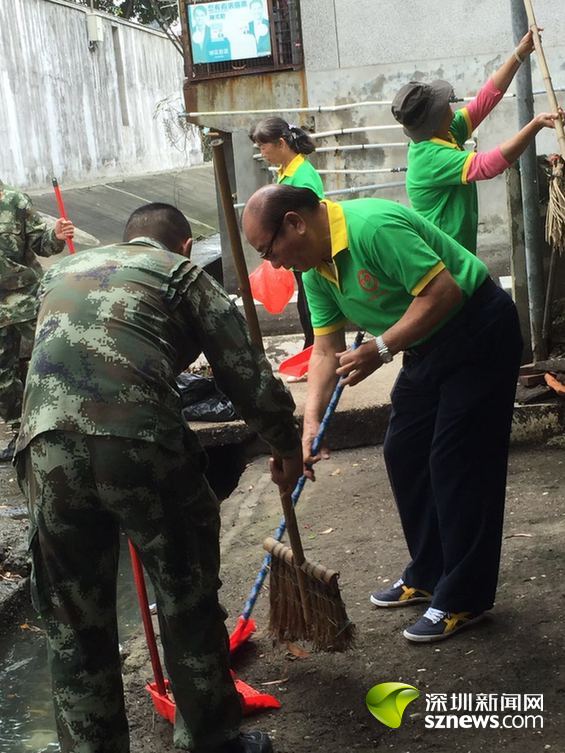 中英街社区老年协会联合十三中队开展清理边境河道 活动中,部队官兵与老年志愿者精神饱满地抵达活动现场,老人和军人二话不说地拿起扫帚、铲子等工具开始打扫起来河道周边的垃圾。当面对河道里的垃圾,用工具难以清扫时,老人和部队官兵发挥雷锋精神,不怕累,不怕脏,弯下腰用手把河道旁的树叶、树枝、塑料瓶等捡起来,这一举动感染了路边的行人,纷纷对他们的行为点赞。活动持续开展了一个多小时,共清理了3大袋垃圾。
