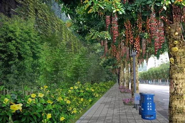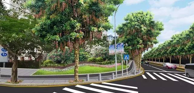 莲塘路口至罗沙立交行道树更换为澳洲火焰木,并对现状市政绿化带进行提升设计。