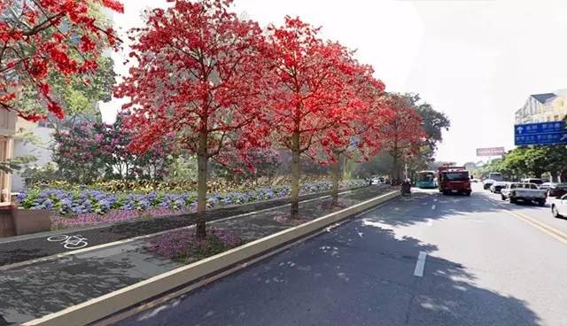 而且,此次更换的是红花玉蕊和澳洲火焰木这两种开花树种的行道树,以后每到开花季节,都会在车道两侧形成花带景观,一定很美!