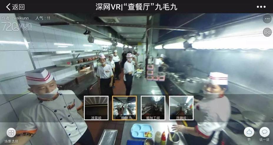 深圳新闻网热心网友王女士进入了九毛九凉菜间检查,她表示今天实地查看了两家餐厅的厨房,对后厨的状况比较满意,但是相比之下,九毛九的洗碗间比旺池川菜规范很多,她表示今后外出就餐会放心很多。给今天检查的两家餐厅打几分?王女士表示旺池川菜可以打8分,九毛九可以打9.9分。