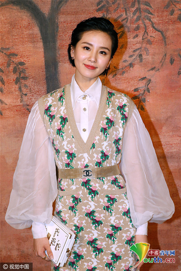 刘诗诗泡泡袖针织裙优雅 复古发髻显东方美(图)