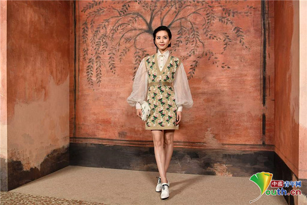 刘诗诗泡泡袖针织裙优雅 复古发髻显东方美(图)