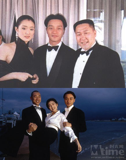 1996年和张国荣合作《风月》在戛纳亮相,身上依然是穿着改良旗袍(上),当时还有一次著名的亮相是巩俐仅穿最简单的白衬衣亮相,却依然吸引无数媒体眼光(下)。
