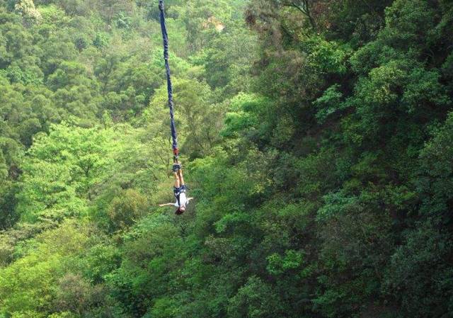 高空弹跳蹦极,广州人也称之为“笨猪针”或“笨猪跳”。白云山高空弹跳蹦极选址于百步梯旁的悬崖边,是广州市内惟一一个蹦极点。