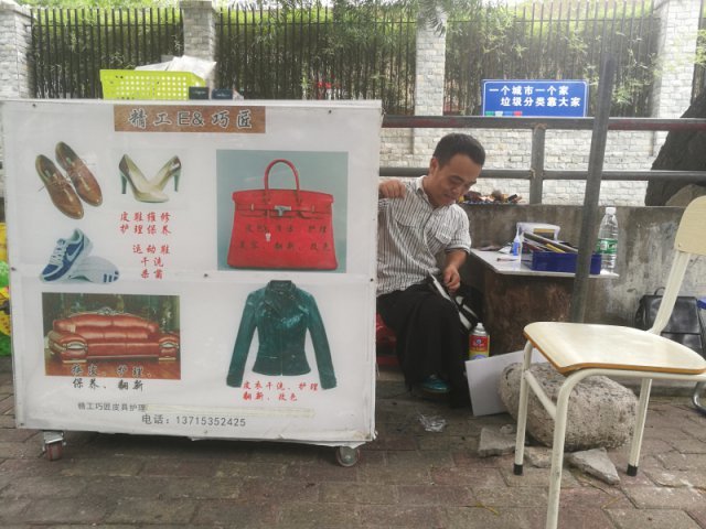 转眼间自卑的少年汪苏明初中毕业,他选择辍学打工,在家乡的拉链厂干着每个月1000多元的手工活,一干就是几年。2009年年初,一位在浙江义乌做生意的朋友开了辆豪车回家,并在闲谈中告诉汪苏明他3个月能挣40万。这深深地刺激了汪苏明,"我当时就想自己在家干一辈子都没法赚那么多,我一定要去外面闯闯。"说走就走,彼时25岁的汪苏明选中了同样年轻的深圳,他觉得充满活力的深圳能让自己这样的人施展拳脚。汪母和汪父都很不理解汪苏明的选择,也试图阻止,但汪苏明很坚持。最后汪母妥协了,她不想让儿子以后留下遗憾,便说服汪父一起凑了4000元钱给汪苏明,让他"就当去旅游了"。有技术没有学历,凭借着一身孤勇和对深圳改革之城的美好向往,汪苏明在2009年的春天,乘着火车来到了深圳。到站之前,透过车窗汪苏明看到了深圳的地标之一——地王大厦,立刻就被它震撼到了。"我从未见过这么高的楼啊,当时就暗暗发誓一定要在这附近工作。"汪苏明回忆起当年刚来深圳的心情语气仍有些激动。然而人生地不熟的汪苏明很快碰壁了,他发现地王大厦周围根本没人愿意雇佣他。汪苏明很快意识到,想在深圳活下去,自己必须有一门手艺。经过考察,汪苏明将目光瞄准了修鞋,他认为修鞋是自己能很快学会并赚钱的一门活计。
