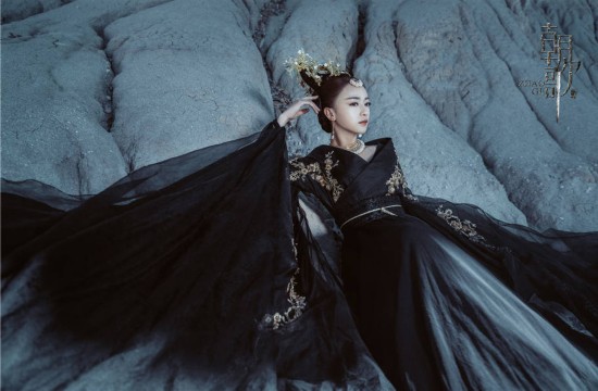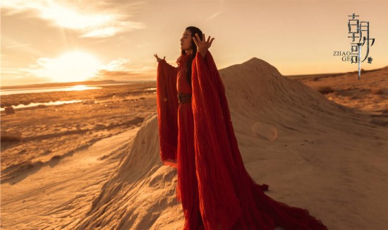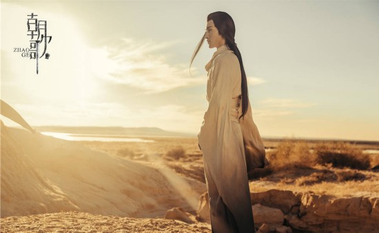 《朝歌》外景地取自新疆,此处视野及尽之地均是辽阔壮丽的美景,落日孤影,风沙起卷,结合商朝的故事背景仿佛天然地就多几分代入感。此次曝光的剧照多了些淡雅和大气,将人物的飘逸唯美与景色的壮丽恢宏巧妙结合,神态或柔媚或坚定,或平静无波或忧思满目,背景的空旷、肃杀透露了故事的高低起伏与孤独苍茫。是儿女情?还是家国恨?在距离我们几千年的商朝时期,或许少了许多选择,但却多了几分专注,写真中人物所透露出的坚毅正是对此种感情最精准的诠释。黄沙落日、乱石嶙峋,剧照中的孤独寥落、剑气肃杀仿佛透漏着背后的戎马倥偬,有一场即将远赴的沙场征战。