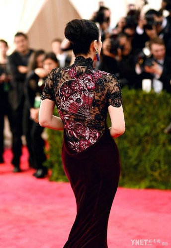 2013年MET GALA的主题是“朋克:从混沌到时尚”,章子怡一袭红色蕾丝礼服惊艳全场。章子怡选择中国元素与时尚相结合,Jason Wu定制的蕾丝大红礼服,配朋克风格上扬眼线及摩登湿润盘发,将“混沌到时尚”的主题表现的淋漓尽致。