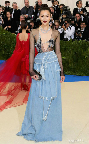 再说刚刚结束,以“致敬川保久玲“为主题的MET GALA,中国超模刘雯第8次征战,且至今未让人失望过,抢眼的Off-White亮片刺绣深V透视牛仔布拼接礼服,为其夺得现场最佳着装。