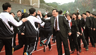 ▲盐高校长罗诚给高三学子加油鼓劲。盐高供图