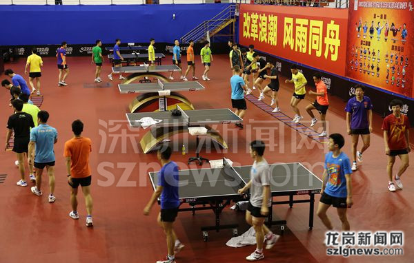 据了解,从4月15日开始,国家乒乓球队男队正式入驻龙岗,进行为期约一个月的封闭集训,全力备战2017年德国杜塞尔多夫世乒赛。这也是国乒男队第五次到龙岗集训,此前在龙岗集训四次后,国乒队均在国际大赛中取得优异的成绩,视龙岗为“福地”。