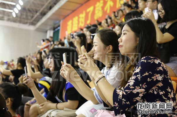5月7日下午的2017年国家乒乓球队龙岗集训开放日现场,300位球迷得以近距离观摩国乒男队训练情况。运动员们紧张有序地开展训练,看台上的“迷弟迷妹们”激动不已,用眼看还不够,个个还拿起照相机、手机,为喜爱的国乒队员留下训练精彩瞬间。