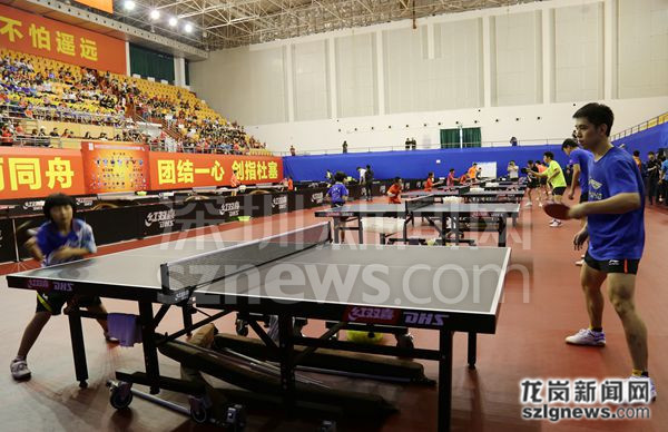 龙岗区业余体校10名青少年运动员代表还下到训练场地,分别与10名国家队队员进行了比赛。