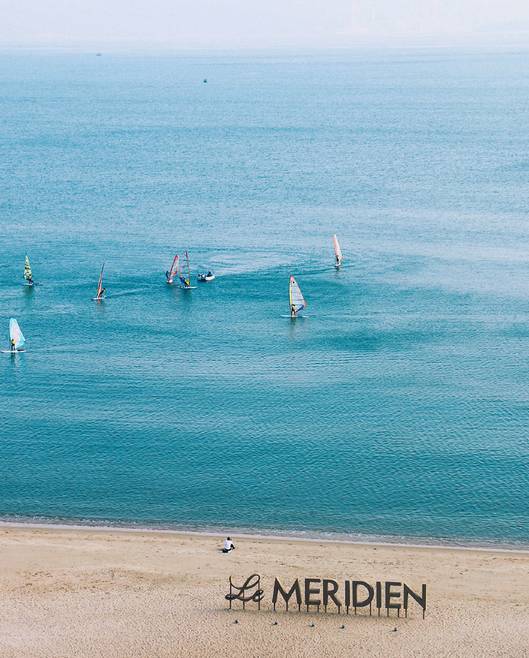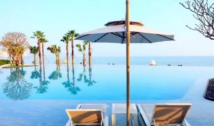 桌椅的白色,与海天同一的蔚蓝是绝配,