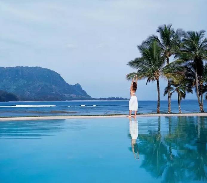 这里有椰林、大海、无边泳池......