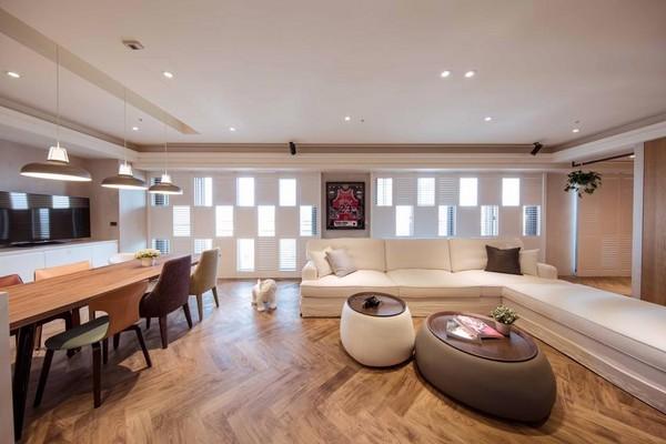 客厅是陈建州录像片的时候,经常曝光的地点之一,L型白色沙发,前方摆放2个掀盖式的木桶,有时可以看到飞翔兄弟钻到里头玩,一旁的木制餐桌、餐椅,上头挂着3个铁制电灯,搭配外头阳光洒落在整个空间里,感觉格外温馨。
