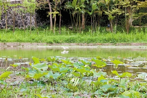 去年三月,本报曾报道过《愿望湖水草泛滥成灾》的现象,一年过去,在盐田相关部门的大力治理下,愿望湖已经恢复昔日美景,更是吸引了白鹭这样的“贵客”。靠近环梅路大梅沙内环线1号桥的愿望湖,湖面水位低,能见到水底淤泥,这里的荷花已经长出粉红色的花苞,正待盛放。下午四五时左右,有白鹭在湖里行走,东张西望,觅食叼鱼,幸运的看客有时还能近距离看到白鹭叼到鱼吃的场景。突然地,有人甩动鱼竿,惊动白鹭,它立马起身飞翔,落在湖边的绿化树上。
