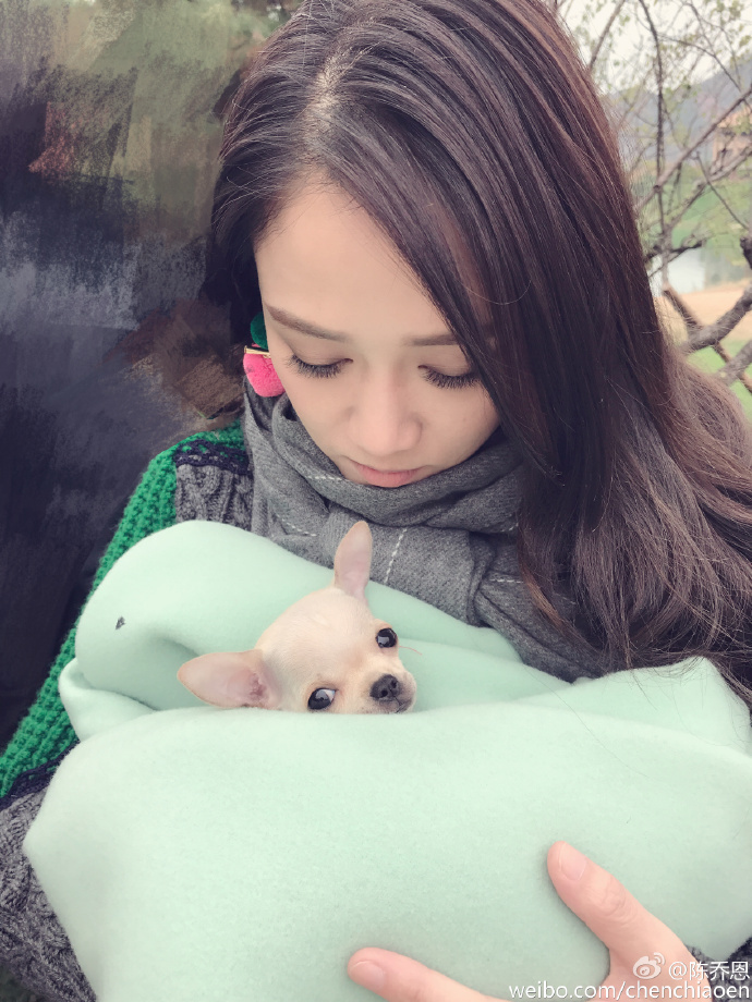 陈乔恩抱狗狗爱心爆棚 大眼嘟嘴卖萌