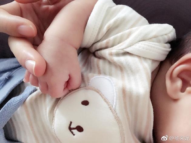5月8日,杨采妮微博晒出宝宝侧身照片,还一并晒出精心缝制的宝宝鞋帽,她表示:“之前小孖宝提早来报道,所以刚出生时比较瘦小,原本准备的衣物都稍微大一点,grandma 马上手织小手套,小袜子和帽子,非常可爱和温暖。”照片中手工缝制的鞋子刚好套在宝宝胖胖的脚上,甚是可爱。
