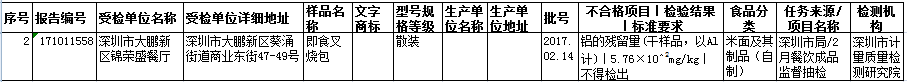 大鹏新区的锦荣盛餐厅的 即食叉烧包也检出了铝残留量超标。