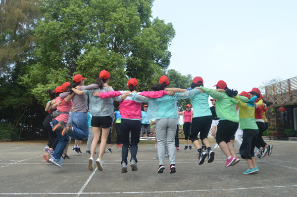 在拓展活动中,30多名护士随机分为两队进行,由队员们选出各自的队长,并在队长的带领下,采取头脑风暴法确定各自的队名、LOGO、口号、队歌等。随后,两队开展了一场别具一格的户外拓展比赛,如破冰、指压板、合力击鼓等;最后是排名落后队“受罚”。对于开展本次拓展活动,每一个参与者都非常开心,也进一步增强了各医院护士的凝聚力。