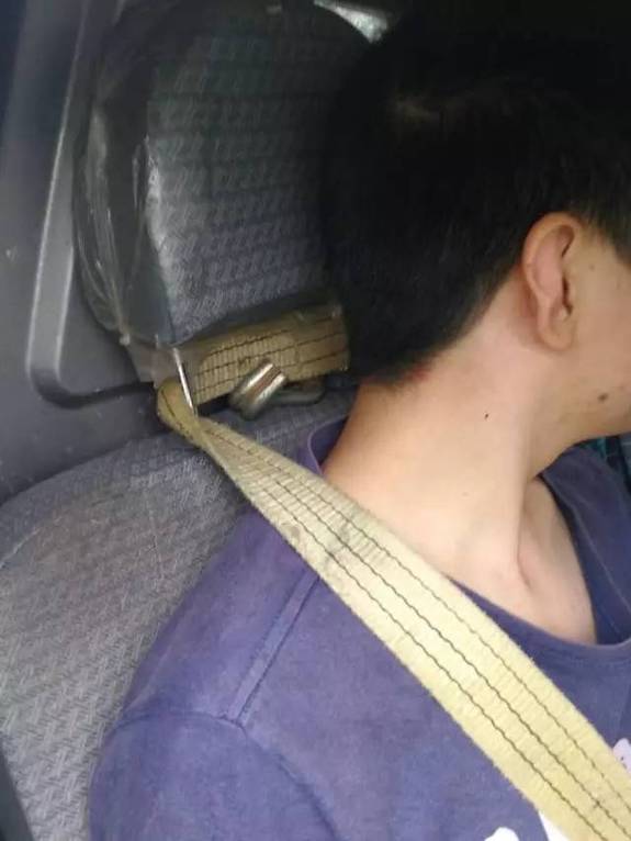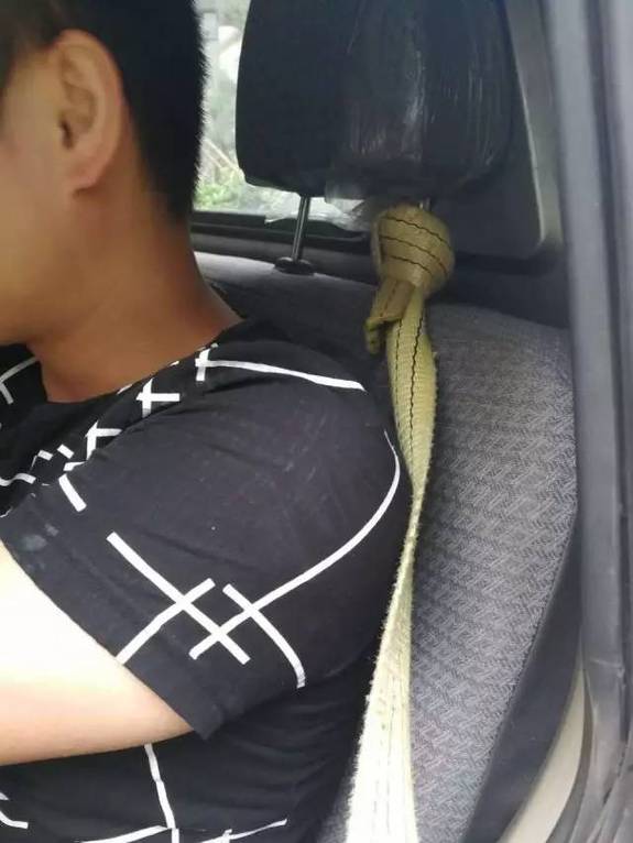 这条自制的安全带显然没有标准安全带所具备的作用,在意外来临时没有办法很好保护司机。