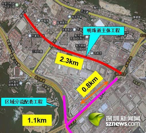 项目位于盐田港后方陆域,将对明珠大道进行改造,全长2.3公里,盐田路以北段红线宽60米、以南段红线宽64.25米;区域分流配套工程包括盐排高速左转深盐路新建匝道、接入中港区匝道及深盐路局部改造。其中新建匝道长约1.1公里,匝道宽8米,单向2车道,设计车速40Km/h;深盐路改造段长约0.8公里。设计时一并考虑地下综合管廊建设,项目估算总投资9.2亿元,年度计划完成投资5000万元。