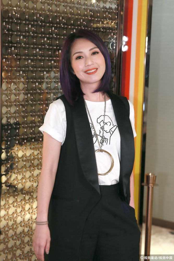 杨千嬅紫色短发似白领显干练 卖萌比耶童心未泯