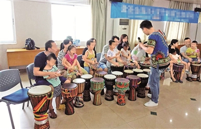 龚乐在为一群自闭症儿童做音乐培训。龚乐供图