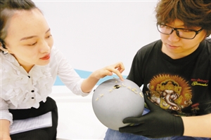 “这件作品名叫《圆满大地》,蚂蚁的一节身体是由20片金箔制成的,金蚂蚁是中国台湾金雕艺术大师吴卿用手工制作的,而陶罐则出自台湾的铁花釉艺术家许朝宗之手。”百泰设计师郑聪向一拨又一拨的观众答疑解惑,“是前几天在中国国家博物馆举办展览的吴卿吗?”“是的!”