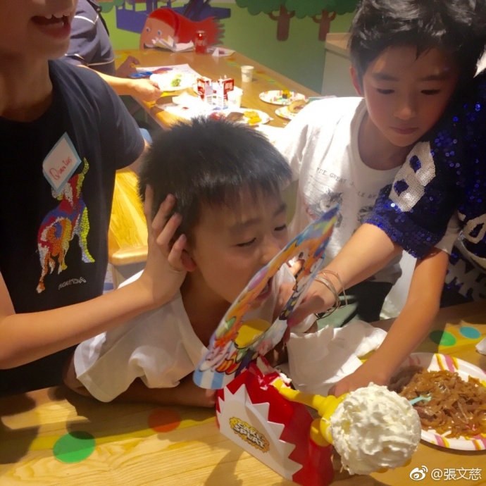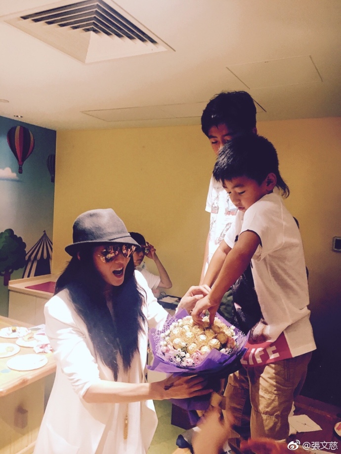 5月13日下午,香港女星张文慈在微博晒出张柏芝为小儿子Quintus办7岁生日派对的照片,表示上百儿童参加派对非常热闹,张柏芝的两个儿子已经非常懂事,送花祝妈妈母亲节快乐。