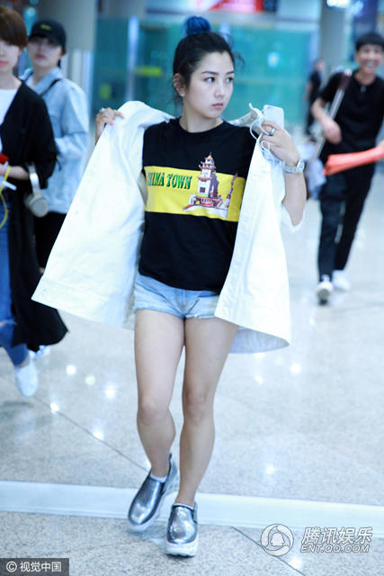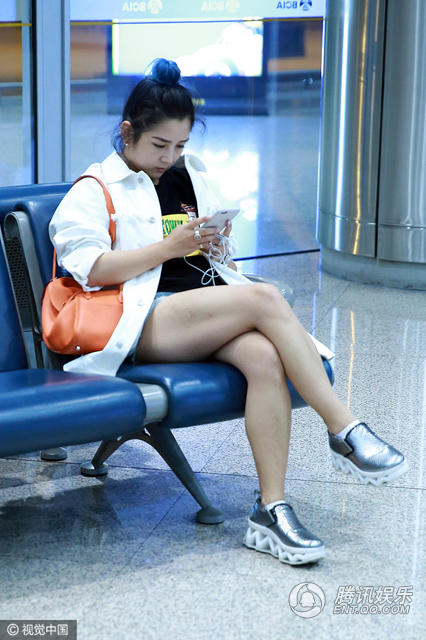 近日,何洁一脸疲惫现身机场,T恤配短裤秀小粗腿,穿衣摆pose耍帅。