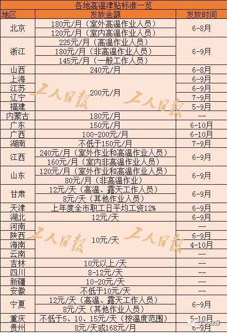各地高温补贴标准