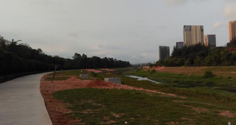 第二阶段:2015年5月,大沙河中下游段治理工程(一期),岸坡复绿,重现芳草青青景象。岸坡复绿,重现芳草。