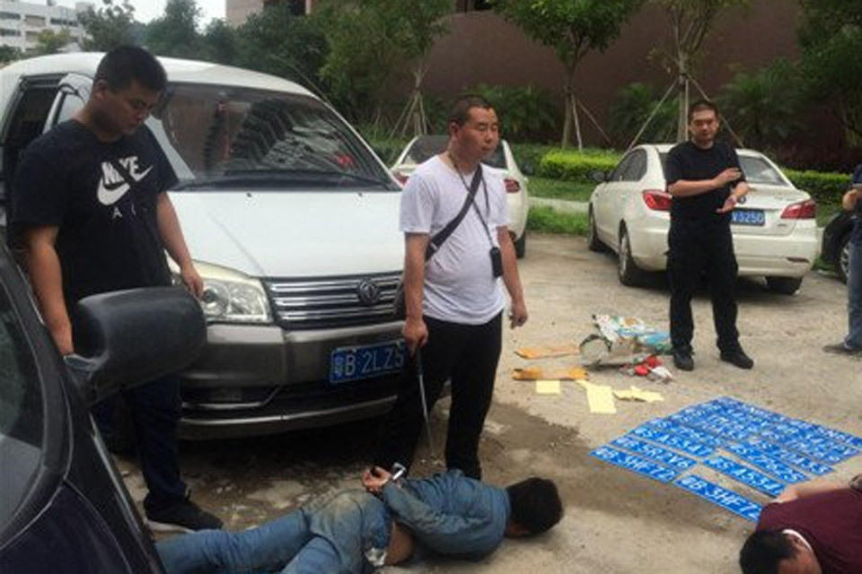 根据视频研判,办案民警很快查明嫌疑人驾驶的作案车辆使用的是假车牌,并追查到涉案车辆藏匿在宝安区107国道三围社区附近一停车场。经过连日蹲守跟踪,警方查明该停车场是嫌疑人的销赃地点。5月16日12时30分许,只见一男子驾车进入停车场后,车不熄火人不下车,像是在等人。分析这名男子可能是收赃嫌疑人,专案组按兵不动,继续观察。