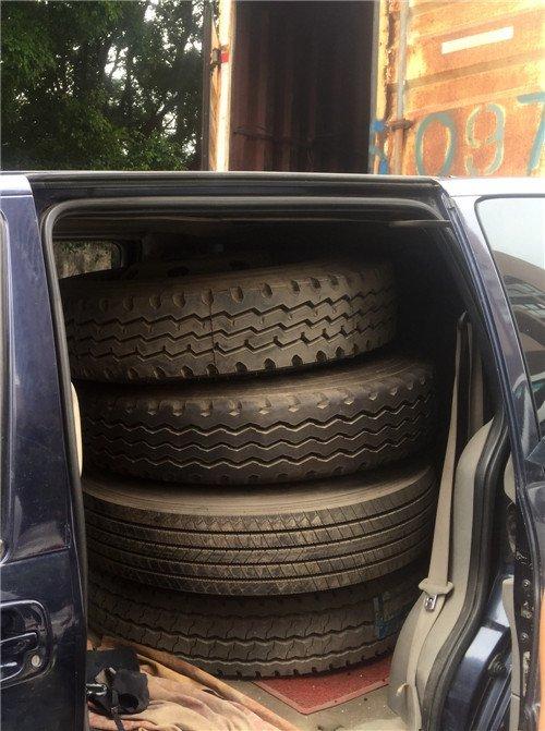 果然,不久后盗窃嫌疑人驾驶作案车辆进入停车场。时机成熟,专案组马上采取行动,伏击警力从驾车快速冲进停车场,不等嫌疑人下车,从四周分别包抄盗窃嫌疑人车辆和收赃人车辆。盗窃嫌疑人和收赃人见状企图驾车逃窜,一路警力很快就将收赃人所驾车辆逼停,盗窃嫌疑人见状狗急跳墙,开始驾车冲撞民警车辆。然而,尽管当头的民警车辆保险杠被撞破,但围拢的民警车辆很快上前,将嫌疑人车辆逼在中间不能动弹。紧接着,民警从车内将3名嫌疑人抓获,当场查获赃物轮胎21条,涉案车辆3辆,作案用假车牌十余副及作案工具板手、撬棍一批。当天收网时,是因为李某接连几天有事没能前来运走放在车上的轮胎,得知黄某喜等嫌疑人再次作案运送轮胎时,心想停在停车场的车可能装不下,于是便驾车前来,准备运走赃物,好为专门放置赃物的车腾地方,正好让民警逮个正着。由于所盗的货车轮胎都是安装在后尾底盘处,许多车主轮胎被盗后都没有察觉,已初步掌握该团伙涉案逾百宗。目前,4 名嫌疑人黄某喜、黄某杰、黄某和李某已刑事拘留,此案正在进一步审理之中。
