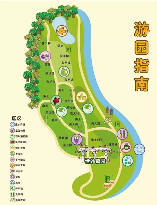 休闲区、餐厅区、儿童乐园、采摘区