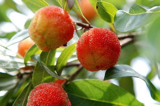 红彤彤的杨梅果缀满翠绿的枝头,个个饱满~