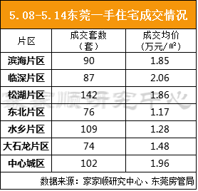 从上周各片区一手住宅成交来看,水乡、松湖、中心城区成交过百,临深片区成交减少69%。