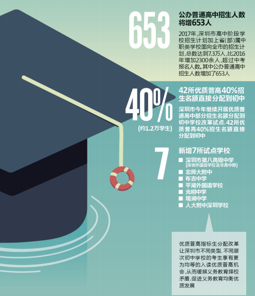 深圳公布2017年高中招生计划 新增7所优质普高指标生分配试点学校