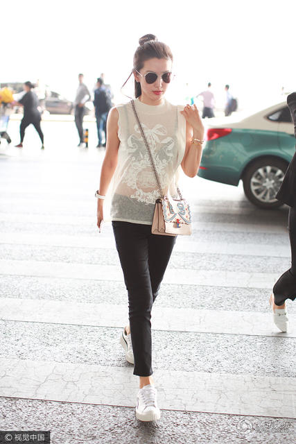 5月19日,李冰冰一身清凉装扮现身机场,她上身穿着薄纱衬衣,黑色内衣若隐若现,凸显出玲珑身材曲线,性感迷人的同时,也用行动打破怀孕疑云。