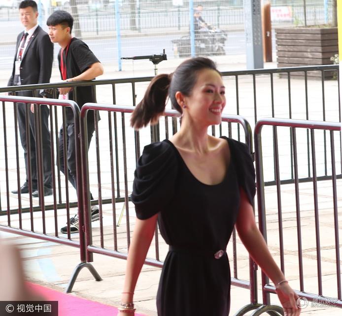 章子怡穿黑裙现身大秀锁骨 疾走甩头发秒变少女