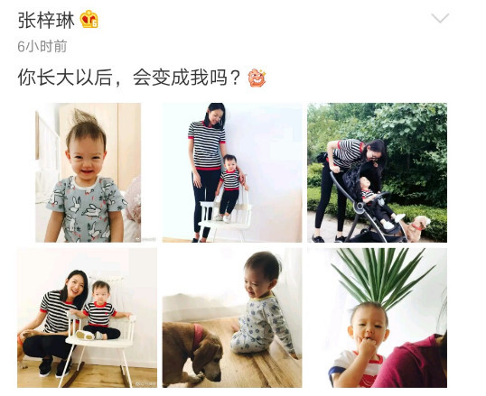 5月22日下午,张梓琳在微博上晒出了6张女儿的萌照,并且充满期待地问道:你长大以后,会变成我吗?