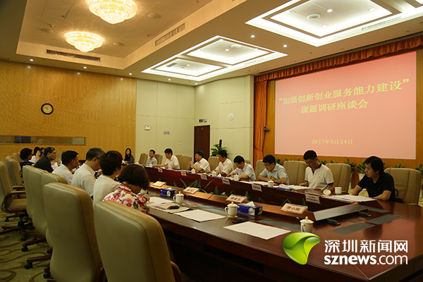 在随后召开的座谈会上,盐田区经促局向课题组介绍了盐田区在创新创业服务方面的主要经验、做法和成效。据介绍,近年来,盐田区大力实施“十大工程”推动“创新驱动”发展,取得了良好的成绩。目前,盐田区已经聚集了一大批高层次科技人才,生物科技、黄金珠宝、休闲旅游、港口物流等已形成产业优势。据统计,2014年至2016年,盐田区全社会研发支出占GDP比重从0.4%增加到0.6%,年均增长25%,全区国际高新技术企业从20家增长至30家,每万人发明专利拥有量从21.3件增至28.2件,全区的创新发展势头良好。