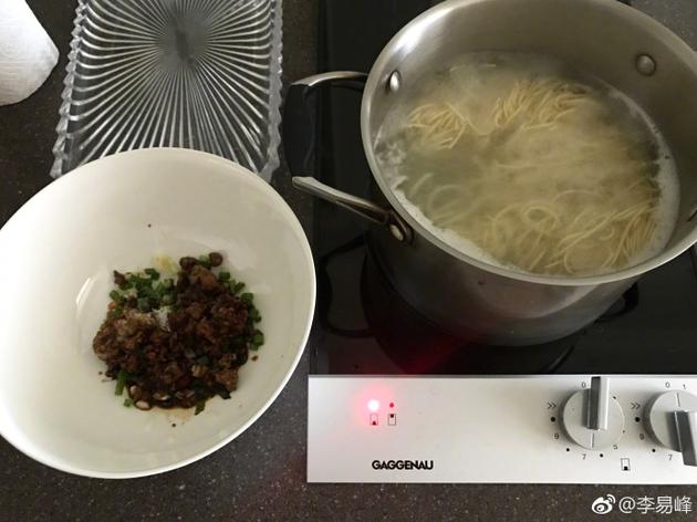 5月24日,李易峰在微博上发文称“下碗面,次完开工”。并晒出了三张照片。照片中李易峰头戴黑色棒球帽。黑色短袖,打扮低调随性,但还是难掩帅气。峰峰自己做的面条看起来很美味啊,又帅又会做饭好赞!